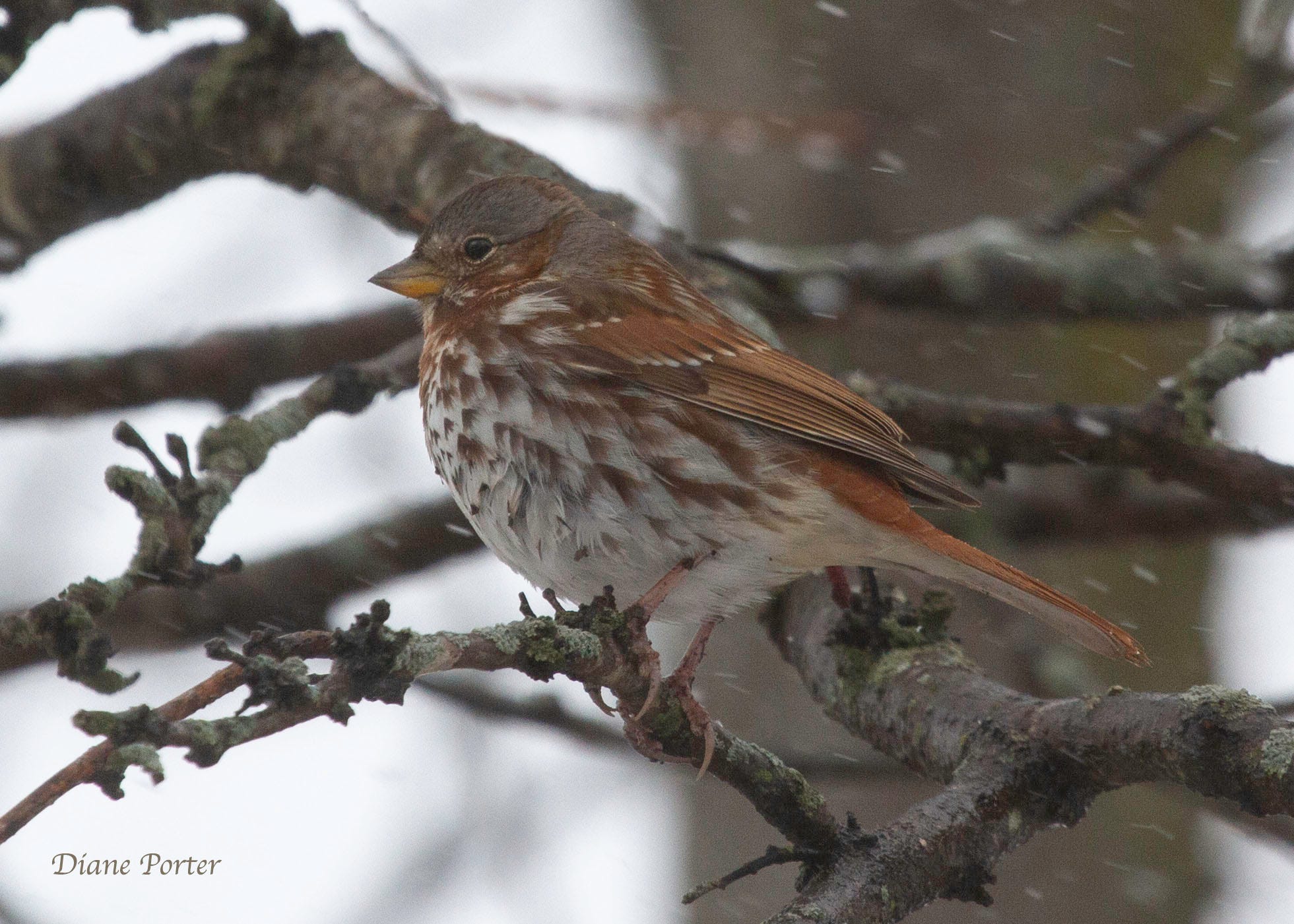Fox Sparrows show up in every state and province of North America at some time of the year. Most of the Fox Sparrows I see in Iowa winter in the southeast. A few actually stay here in Iowa woodlands all winter, out of sight.