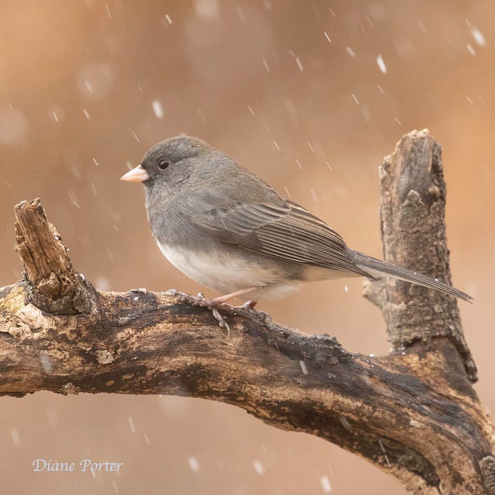 Even in the coldest Iowa winter, the Dark-eyed Junco always warms my heart.