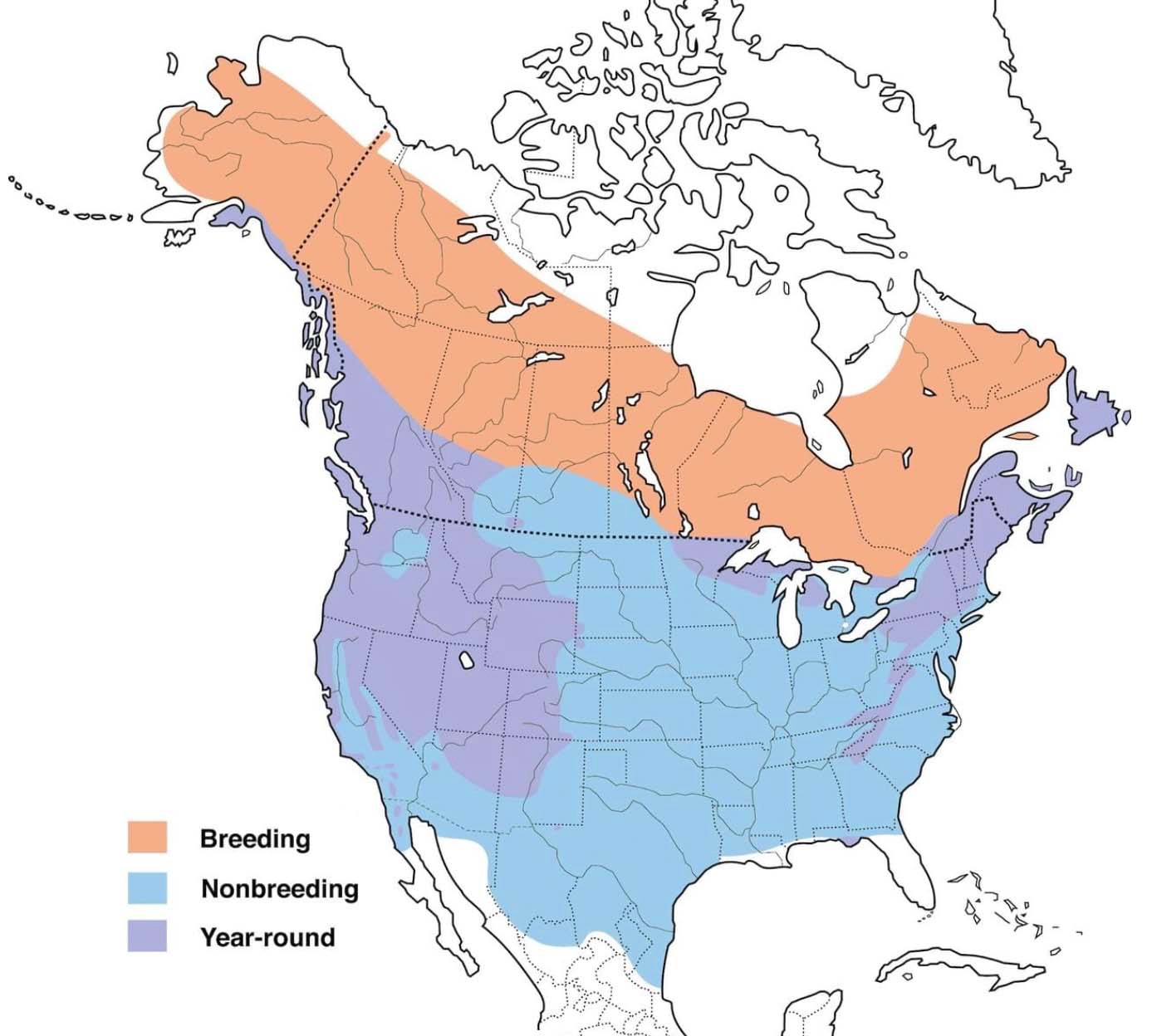 The map below, from the Cornell Lab of Ornithology, shows the range of Dark-eyed Juncos, including all subspecies.