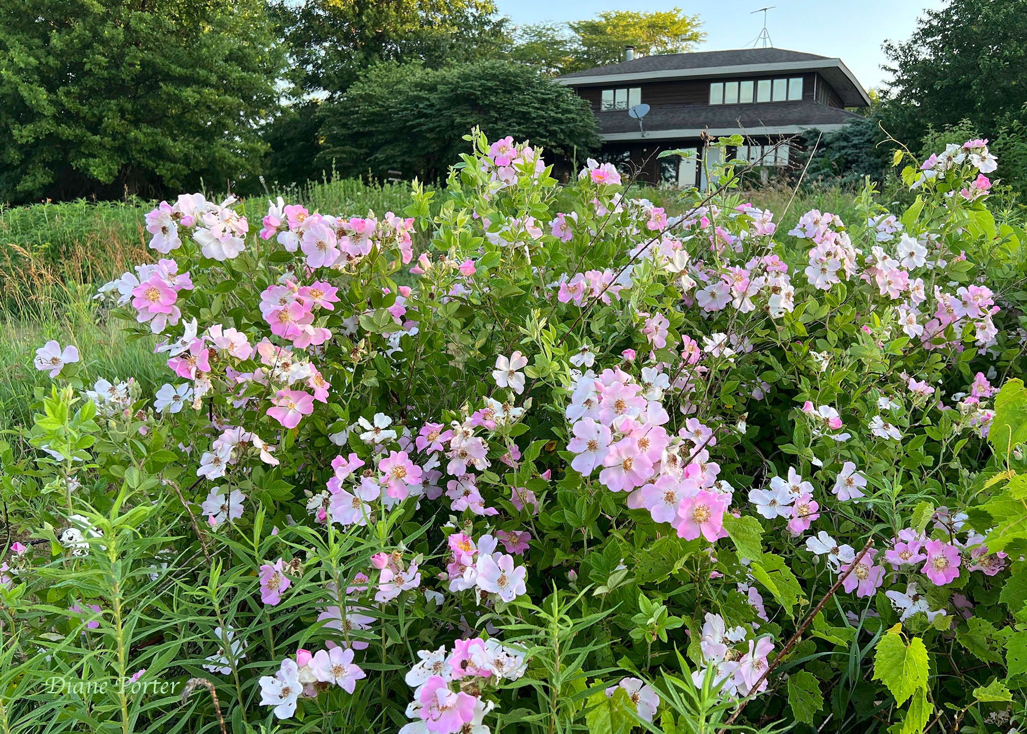 In the grassy field near my house, there’s a mound of wild roses. It was planted there years ago by the hand of nature. I barely notice it in spring, when it blends into the green field.