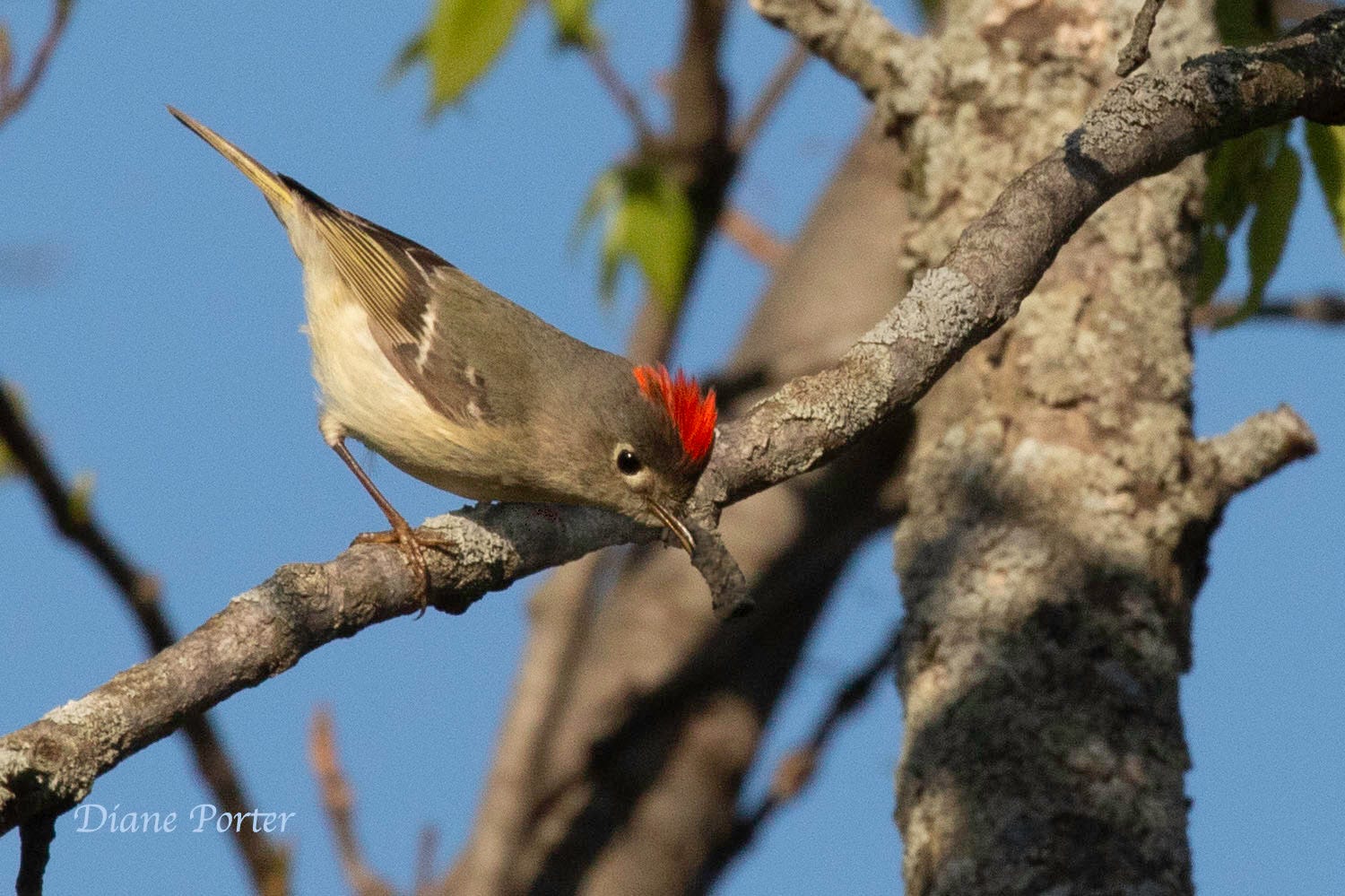 It seems unlikely that the male even knows he has a ruby crown blazing on his head. He’s probably seen other males do it, though, and he knows instinctively that the other guy is feeling aggressive.