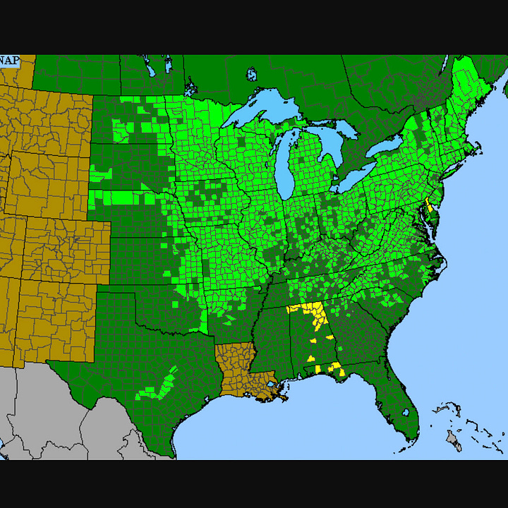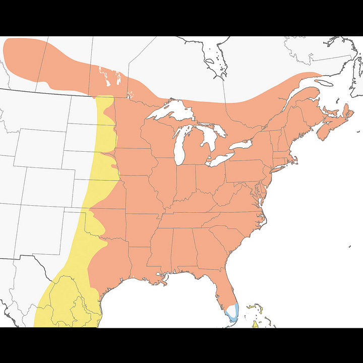 The left map below shows the range of the Red Columbine. The right map shows the range of the Ruby-throated Hummingbird. Get the picture?