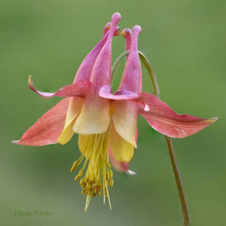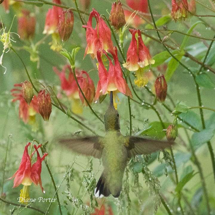 Subscriber Pat Hurst emailed the author (and gave permission to show the message here): "Love this one so much!! In Colorado the native Columbine is blue, you would see meadows of them in the Spring. Unfortunately people picked them so that now you don’t see that many. Now I’m watching to see what variety of hummingbird comes to the blue columbines in my yard. Sure love your posts."