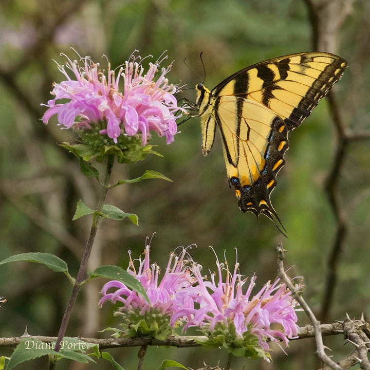 Some of our most dramatic butterflies seek out Wild Bergamot. The large flower heads make easy landing platforms, and the tubular blossoms are a good fit for a butterfly’s long proboscis. Swallowtails, monarchs, skippers, fritillaries, painted ladies, and sulphurs all favor this plant.