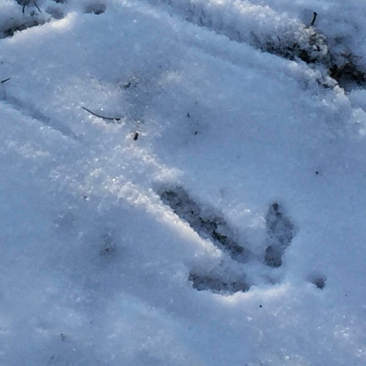 In the winter woods, snow evidence shows flocks of turkeys have been parading down the trails.