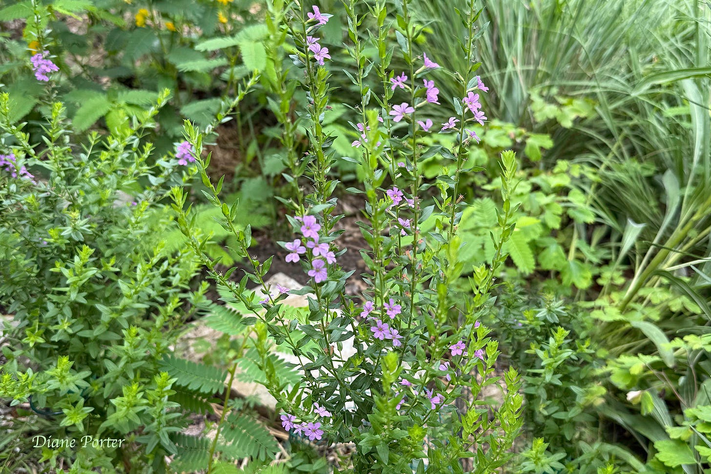 The ground is often wet there. That may be why trees haven’t invaded. It is home to wildflowers that I don’t find up top, where the ground is drier. It’s a magical feeling to enter. This Pocket Prairie is where I discovered a native Iowa wildflower named Winged Loosestrife.