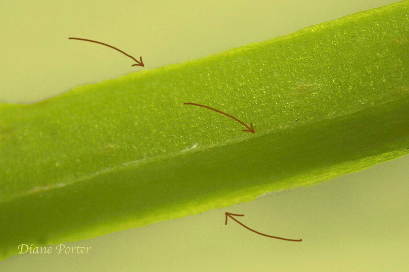 The plant is inconspicuous when buried in prairie. When I first found it in the Pocket Prairie, I figured it might be hard to find it again when the seeds ripened. So I marked some plants with fluorescent tape.